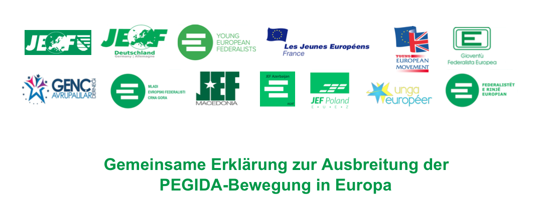 Als Junge Europäische Föderalisten konstatieren wir, dass PEGIDA eine Gefahr für das in unserem politischen Programm definierte Ziel eines offenen, toleranten, inklusiven und demokratischen Europas darstellt. Die gemeinsame Erklärung zur Ausbreitung der PEGIDA-Bewegung in Europa ist eine Initiative der JEF Sachsen und der JEF Deutschland und wird von folgenden JEF-Sektionen unterstützt: