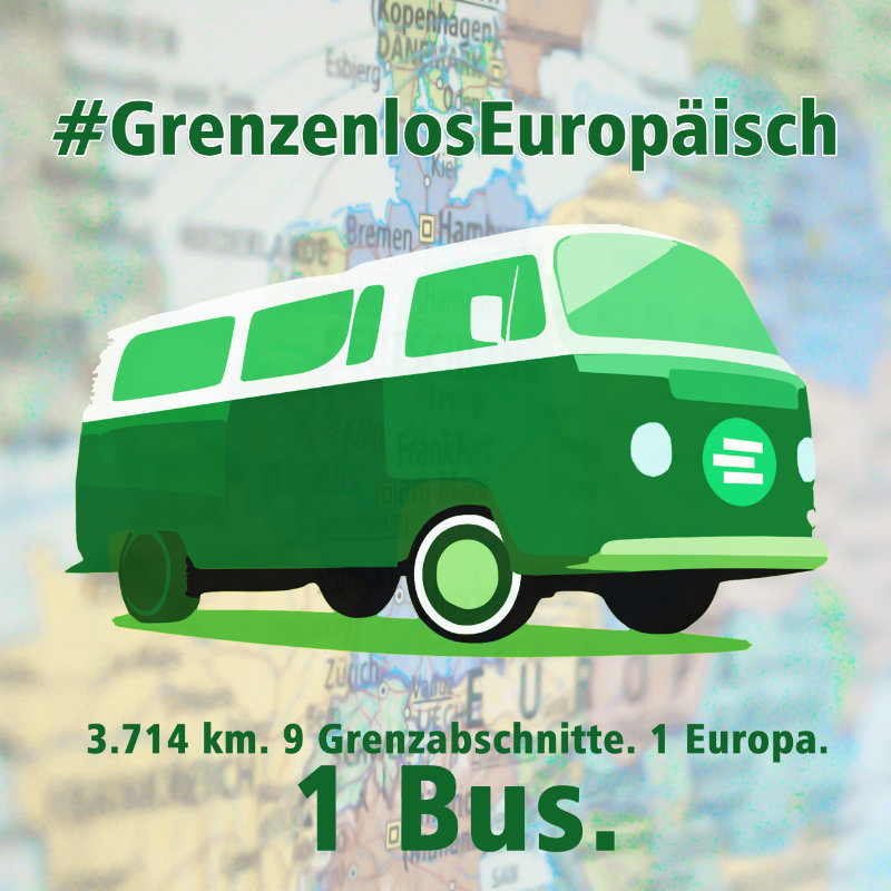 3.714 km. 9 Grenzabschnitte. 1 Europa. 1 Bus. Im April 2019 wollen junge Europäerinnen und Europäer mit mehreren Kleinbussen die deutsche Grenze abfahren. Sie werden auf die Europawahl aufmerksam machen, Begegnungen und Dialog zwischen Menschen auf beiden Seite der Grenze und über Europa fördern und auf die Wichtigkeit von offenen Binnengrenzen in Europa aufmerksam machen. Diese „grenzenlos europäische“ Bustour ist Teil der Wahlkampagne der Jungen Europäischen Föderalisten Deutschland (JEF), des ältesten überparteilichen pro-europäischen Jugendverbands in Deutschland.